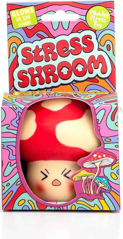 Packaged in a trippy, fun box, this friendly mushroom stress toy will comfort you as you slip away from your worries! Our friendly shroom makes a great fun mushroom gift for anyone looking for the perfect stress relief toys on their birthday, at Christmas, or even for a secret santa gift in the office!
